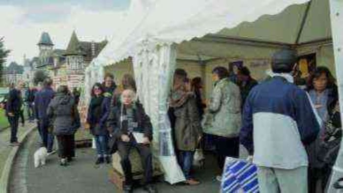 Après un déjeuner convivial au restaurant de Sweet Home, les responsables des associations allèrent prendre possession des barnums installés la veille par les services de la ville, puis les auteurs le souhaitant purent y présenter leurs livres, y compris dans le petit pavillon de la place ouvert pour la circonstance, à un public ravi de cet exceptionnelle et étonnante manifestation de poètes venue investir la place du Grand Hôtel, sous le regard complice de la statue grandeur nature de Marcel Proust.