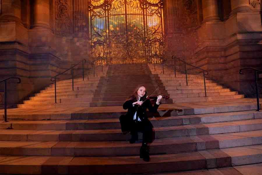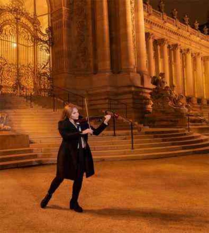 Qu'elle joue au milieu de la foule ou sur un pont de Paris en pleine journée, son archet frappe ou caresse les cordes de son violon avec la même rigueur de virtuosité, suivant à la perfection la mesure de ses partitions favorites, imprimées déjà de longue date dans son esprit.