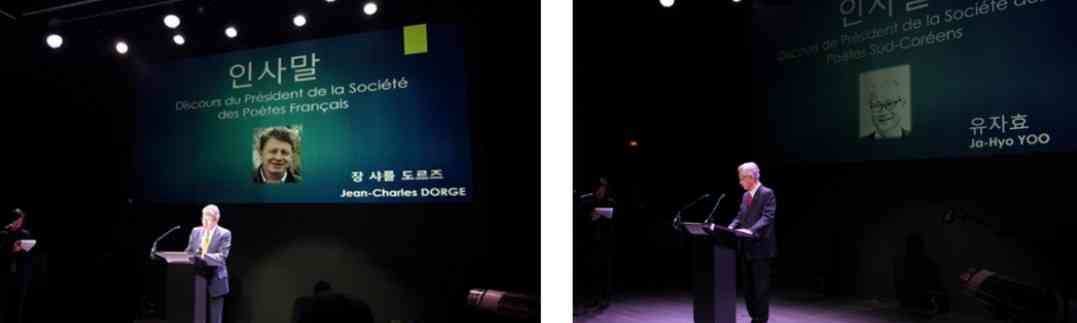 Lors de la cérémonie, M. Ja-Hyo YOO a déclaré : «La première poésie occidentale grand public que nous avons rencontrée était la poésie française, y compris l’introduction de poètes français tels que Paul Valéry dans le premier magazine hebdomadaire coréen Taeseo Munye Shinbo. J’espère que notre association et l’association Société des Poètes Français, qui a une longue tradition, noueront des amitiés particulières et échangeront activement à l’avenir».