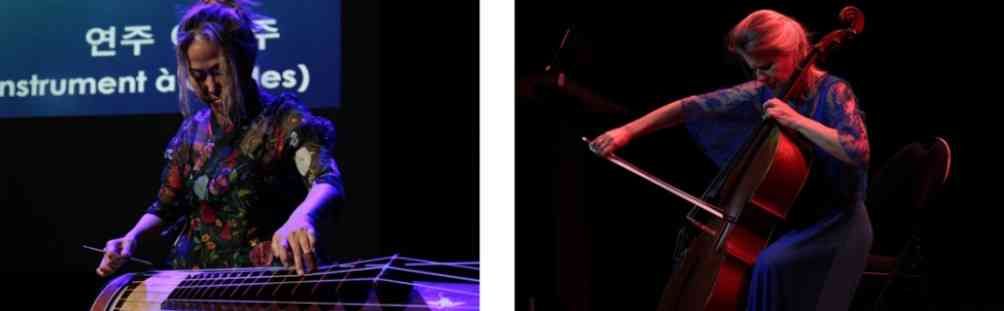 La musicienne Jeoung-Ju LEE (Geomungo - instrument à cordes bi-millénaire) a ému le public avec son interprétation de «Dalmuri» (mélodies traditionnelles coréennes), tandis que la concertiste réputée Marie-Claude BANTIGNY (Violoncelle) a ouvert et clôturé le récital poétique avec ses subtiles interprétations des morceaux «Le cygne» de Camille SAINT-SAËNS et «Mélodie» de GLUCK. Toutes deux ont reçu de grands applaudissements.