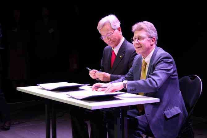 Puis, après une prise de parole du président de la SOCIÉTÉ DES POÈTES FRANÇAIS, M. Jean-Charles DORGE et du président de la SOCIÉTÉ DES POÈTES SUD-CORÉENS, M. Ja-Hyo YOO, ceux-ci ont signé un mémorandum-convention de partenariat.