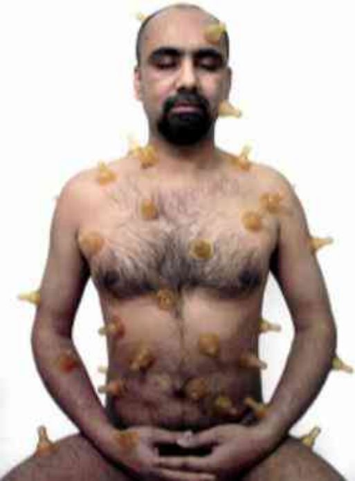 En 2004, Debesh Goswami se vêtit d’une nouvelle peau qu’il dut arracher pour pouvoir continuer à respirer, à voir et à entendre. Figures ambivalentes d’un écorché ou plutôt d’un cadavre dont la peau en décomposition tombait en lambeaux ; la nouvelle peau était devenue la desquamation d’une dépouille… « J’essaie de croire que ces gestes rituels rendront les frontières plus flexibles ».