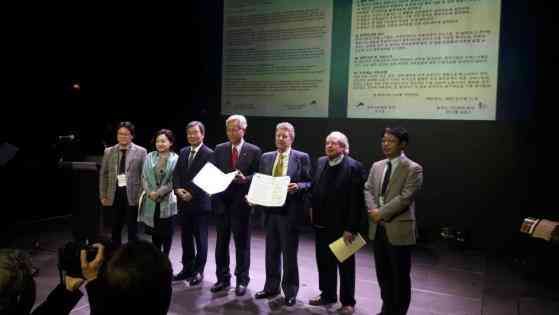 Puis, après une prise de parole du président de la SOCIÉTÉ DES POÈTES FRANÇAIS, M. Jean-Charles DORGE et du président de la SOCIÉTÉ DES POÈTES SUD-CORÉENS, M. Ja-Hyo YOO, ceux-ci ont signé un mémorandum-convention de partenariat.